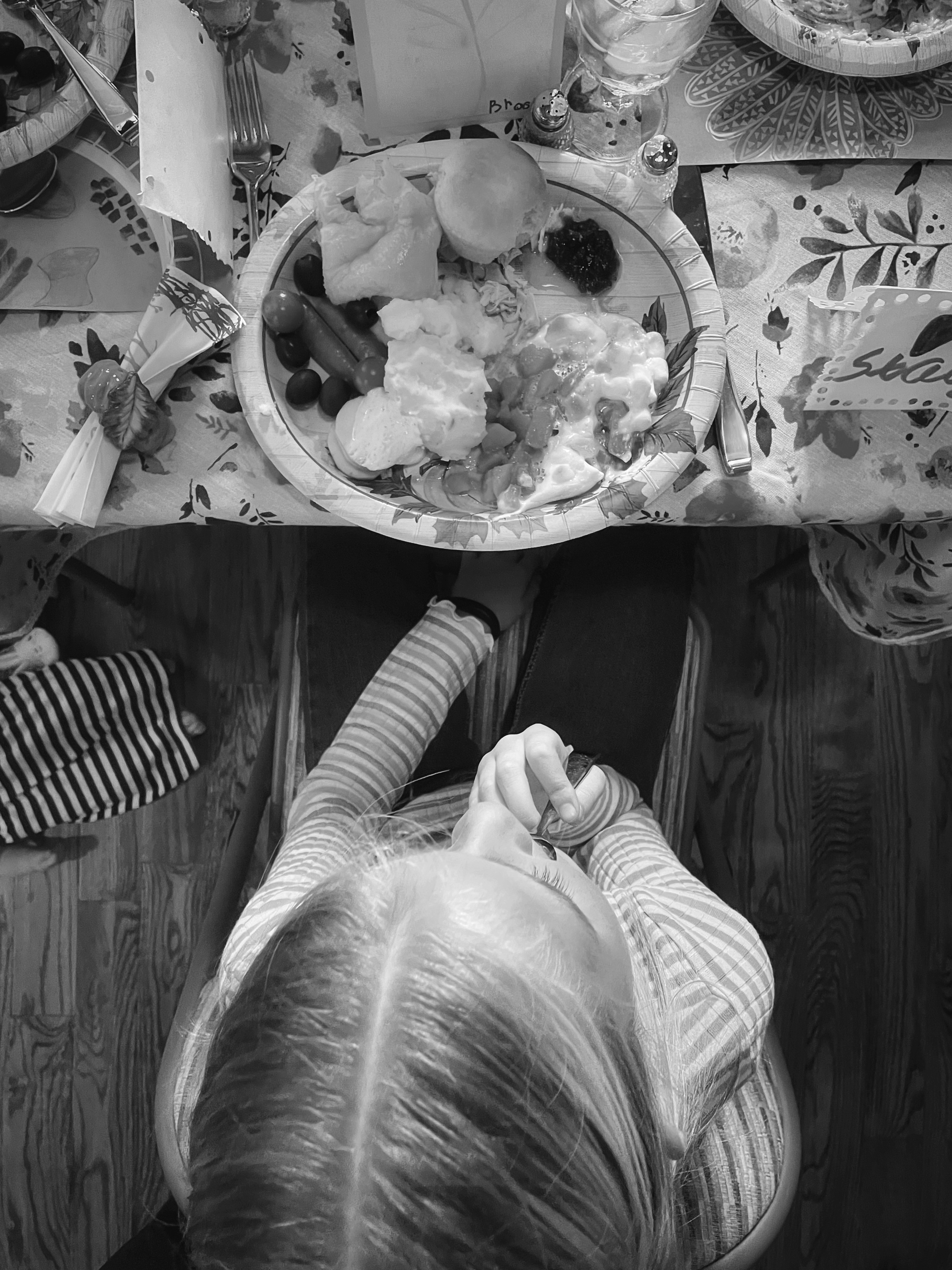 Watching these two together makes my heart happy. Kevin loves including the kids when he can, and today was the perfect example. There were only a few kids there, but Kevin made sure to make it a positive experience for his little dude. Brooke and I enjoyed sleeping in on Thanksgiving, then prepared the sweet potatoes together while listening to Christmas music. Once we were all showered and ready, we headed to Grandma and Papa's house where Brooke peeled 5 pounds of golden potatoes for mashies. She definitely earned pro status on the peeler!!